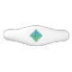 A ceramic drawer pull with a blue-green Celtic knot diamond design.
