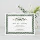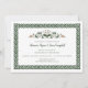 These beautiful Irish themed horizontal wedding invitations have an intricate and ornate Celtic knot work border in classic green palette and a complex botanical border illustrations of Flowers bloom and leaves topping your wedding details.