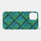 An iPhone 12 Mini Case with a blue-green Celtic knot repeated tile pattern against a black background. Not an iPhone 12 Mini? No worries, it's also available for other device types =)