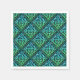 A set of super cool paper napkins with a blue-green Celtic knot repeated diamond tile design against a black background.