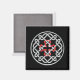 A square magnet with a Celtic knot design with a red square cross in the centre.