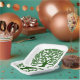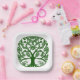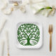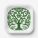 Paper plates in a stylised, Celtic knot, tree of life design in dark emerald Green on a white background