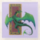 A green dragon with celtic knot work in a backdrop of lavender
