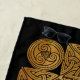 An intricate Celtic knot work cross with eternal spirals and trinity knots adorns an ancient parchment