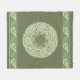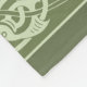 Border of Celtic knot work intertwined fish design in shades of green, with a large circular fish design medallion in the centre