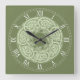 Celtic Knotwork Fish in Green Square Wall Clock