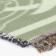 A quality printed throw has its advantages. This is a much finer weave throw than its loopier cousins, and though lighter, it is worth the investment for custom room accessorizing. The back is much prettier than the typical brown, and the fringe on the long sides very vivid, the selvage nicely done. Before photographing, I washed the throw in cold water, delicate, with a thicker woven throw the same size. On tumble dry low, this throw was dry in half the time as the other. This is a very practical quality if you use throws for furniture covers or to wrap up in frequently. The sleekness of the fabric makes it a great layer for accenting or protecting without the feeling of sitting on too much stuff. Perfect for napping or when you feel a light chill coming on. The color printing is beautiful and on this fabric, matched the design and color of my Photoshop image. This is an advantage for blending room fabrics and colors. The fringe on the short sides prints the colors from the design image and therefore varies from the side fringe. I streaked a white fractal line through the plaid pattern to give the illusion of weaving. This printed as crisp as an illusory thread, and put some white in the short side fringe, showing another advantage of print vs loomed- for artistic purposes, line lines, detail, and color integrity can be planned and preserved. My loomed throws have color limitations and more of a needlepoint texture. Print throws reproduce an exact image. The throw felt a little stiff straight out of the package, but this went away in the first delicate wash. Of course I searched the wash water for ink or bleeding and there was none.