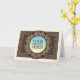 A golden Celtic knotted circle against a rectangular, blue and gold Celtic design border. Just the thing to frame your very own photograph on a greeting card, invitation, or announcement.
