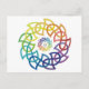 Colourful digital images of celtic knotwork rings in a rainbow spectrum of colour.