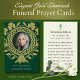 Honour the memory of your loved one with this traditional Catholic funeral memorial featuring an ornate gold-embossed Celtic knot and shamrock design. The front includes a circular photo frame with the words “In Loving Memory” and the name of the departed. The reverse side features a comforting Catholic prayer for the repose of the soul, personalised with birth and passing dates. A beautiful expression of faith and Irish heritage, ideal for wakes, funeral Masses, or as keepsakes for friends and family.