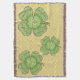 This classic four leaf clover overlays a concentric circle design featuring layers of Celtic weaves in multiple shades of green with a bit of orange for accent.