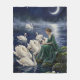 Celtic Swans Moonlit Lake Night Fantasy Art Fleece Blanket