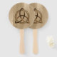 Beat the heat with this set of hand fans featuring a simple coloured Celtic triquetra interlaced with a circle forming a trinitarian symbol against a wood background, representing spiritual unity with the divine. Great for Celtic / Irish parties =)