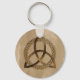 A Celtic Triquetra Trinity Knot Round Keychain featuring a simple coloured Celtic triquetra interlaced with a circle forming a trinitarian symbol against a wood background, representing spiritual unity with the divine.