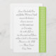 This elegant wedding invitation features a bright peridot green border along the right edge of the card with a white Celtic weave made up of stylised hearts. The left features plenty of space for all of the details of your special event with some sample text in place that can be customised to fit your needs. A large Celtic Weave heart in pastel green adorns the back to add a final touch of class.