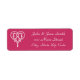 A bright raspberry pink return address label is decorated with a white Celtic weave heart on the left and sample text on the right for customising to make it your own.