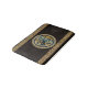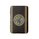 Richly intertwined Celtic knots creating the shape of a wolf and surrounded by a wreath of knots, in turn framed in more intricate patterns. A great piece of culture, history and heritage, all over a background of dark brown (chocolate) simulated old leather.
