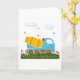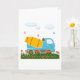 Cement mixer truck in a field with flowers. Graphic design ideal for nursery decoration or gifts for young children.