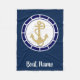 Central Golden Anchor Navy Blue Nautical Fleece Blanket