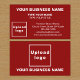 Centre aligned style red business card for your customers or clients to easily find your business address and contact information. Customise it by uploading your business logo, typing your business name, your name, your title, address, phone number, e-mail and website or social media page. Please check the appearance of the front and back sides after uploading logo and typing texts. If the appearance is pleasing to you, you can place your order now. If you need to resize or reposition the logo and texts, please adjust in the design tool. You can also change the background colour, font colour and font style in the design tool.