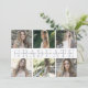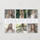 Modern graduation announcement card features six of your favourite photos aligned side by side in two rows, with "graduate" displayed at the centre in elegant grey-blue lettering. Personalise with your name, school and graduation year on a sheer white stripe overlay. Cards reverse to a subtle ikat pattern in grey and white. An elegant and modern choice for 2017 graduates.