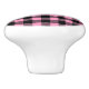 This ceramic cabinet knob is shown in a Black and Pink buffalo plaid print.