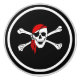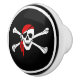 This ceramic cabinet knob is shown in white with a black background and a pirate skull print.