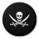 This ceramic cabinet knob is shown in white with a black background and a pirate skull and blades print. Customise this item or buy as is.