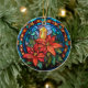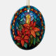 Ceramic Christmas Tree Ornament featuring poinsettias flowers and a candle. Done in a stained glass "looking" style. The ornament is made of ceramic and light does not filter through it. This is a beautifully printed product.