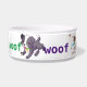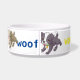 Two types of dogs with different coloured word woof