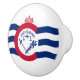 Crafted to celebrate Cincinnati's unique identity, this ceramic knob pull prominently displays the flag of Cincinnati. The flag features three wavy blue lines symbolising the Ohio River, a red "C" in the centre, and a red and blue winged rod of Mercury, representing commerce and progress.