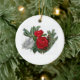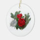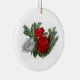 Red and white floral design on ceramic ornament