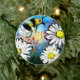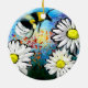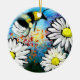 Ceramic Ornament Whimsical Bee Daisies Abstract
