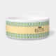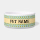 Customisable pet bowl with yellow and green background with beer mug trim.