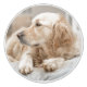 White ceramic pull or door knob with a photographic portrait of a beautiful female Golden Retriever on the front.