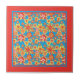 A vibrantly coloured Ceramic Tile with a ditzy flowers pattern in orange, red and yellow on a turquoise blue background; from a handpainted paper collage design by Judy Adamson. Use as a trivet or as a wall tile or in the lid of a trinket box.