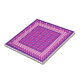 A square ceramic tile, in a mix'n'match design of hearts and flowers pattern, check gingham and polka dots in shades of magenta, purple and white. Add a wooden frame to make an attractive and useful trivet.