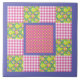 A pretty Ceramic Tile, decorated with a faux-patchwork pattern of deep pink, violet blue and yellow primroses on a leafy green background, with deep pink and white check gingham and polka dots; from the Posh & Painterly "Primroses" collection.