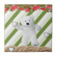 Ceramic Tile White Green Stripe Floral Teddy Bear