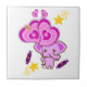 Ceramic Tile White Purple Elephants Hearts