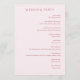 This wedding program features a soft pink color palette with elegant typography, creating an inviting and romantic atmosphere. The design includes a delicate floral illustration at the bottom, adding a touch of natural beauty to the layout. The clean and structured composition highlights key ceremony elements, making it both functional and stylish for any wedding celebration. Perfect for couples looking to add a sophisticated and personalized touch to their special day.