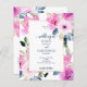 Cerise pink spring flowers navy blue font budget wedding invitation.