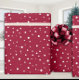 A warm and cosy cerise red colour wrapping paper with white falling snow Christmas Holiday wrapping paper.