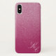 Design features glittery light shimmer on a cerise background. Personalise with your initials.