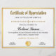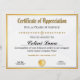 Celebrate employee milestones with our Certificate of Appreciation, designed for work anniversary and years of service recognition. This professional design features a gold frame and customisable text fields to create a personalised diploma for your best employee. Perfect for corporate events, retirement parties, or annual award ceremonies, this certificate allows you to add names, dates, and company logos. Pair it with matching award plaques or thank-you cards for a cohesive recognition package.