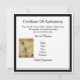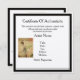 After I learned how to modify and relocate all the elements on the certificate, I was able to produce numerous certificates of authenticity for my paintings, considering the vast collection of pictures I possess.After I learned how to modify and relocate all the elements on the certificate, I was able to produce numerous certificates of authenticity for my paintings, considering the vast collection of pictures I possess. I recently received a Certificate which came with a thick paper and an envelope that can be taped to its back. The quality of the Certificate is outstanding, and I plan to keep purchasing more as I continue painting.