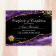 The certificate came out nice, it was what I expected but I have no use for it because I paid extra shipping for this product only for it to not arrive on time. That was a waste of my money. The printing turned our great. Everything I wanted on the certificate was exactly how I customized it.