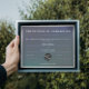 Modern moiré effect masculine and stylish certificate of completion. Colours : grey, blue.