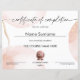 Modern feminine Certificate of Completion with abstract watercolor shapes. Perfect for your lashes, makeup or hairdresser course, diploma, award, participation certificate, or any beauty related business