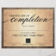 Modern Gold Frame Dark Wood Certificate of Completion Awards.